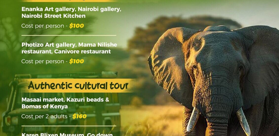 DAY TOUR PACKAGES Delicacies & galleria Enanka Art gallery | Nairobi gallery | Nairobi Street Kitchen Cost per person: $100 Photizo Art Gallery | Mama Nilishe Restaur...
